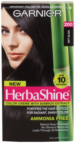 Fortifies the hair cuticle for radiant, shiny color. Natural gray coverage, no obvious root line, lasts through 28 shampoos. What is herbashine? A new generation of haircolor from garnier, with bamboo extract. It improves the condition of hair by fortifying the cuticle while wrapping it in radiant, shiny color. How does it work? This exclusive ammonia free color creme with bamboo extract reinforces the hair's protective cuticle layer while coloring. Hair looks and feels stronger for radiant color that's truly shiny and luminous. Will it cover my gray? Garnier herbashine offers natural gray coverage that lasts through 28 shampoos. Is it easy to apply? Application is simple and pleasant. Herbashine's fragrance is fresh and soothing. The rich, creamy formula spreads easily and doesn't drip. It only takes 10 minutes to get herbashine's radiant, shiny color!this kit contains: activating creme, ammonia free color creme, shine-infused conditioner, instruction sheet and gloves. Product type: lasts through 28 shampoos, processing time: 10 minutes, gray coverage: covers hair with up to 70 percent grays. Why bamboo? Bamboo is well-known for its extreme strength and flexibility. Stronger than steel yet extraordinarily supple, it sways and bends but almost never breaks. Bamboo extract contains nutrients that help give bamboo its resiliency and flexibility.Garnier Herbashine Haircolor, 200 Soft Black - I strongly suggest you to get it at Amazon.com. They have Special offer this time.