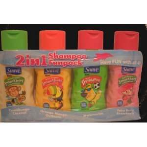 Includes the following 2 in 1 Shampoos: # Watermelon # Orange Mango Outburst # Cowabunga Coconut # Fairy Berry StrawberrySuave Kids 2 in 1 Shampoo and Conditioner 4 Pack - I strongly recommend you to get it at Amazon.com. They have Special offer this time.