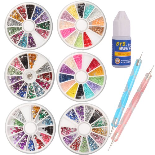 6 Wheels Combo Set Nail Art Nailart Manicure Rhinestones Glitter Tips Deco + 2x Dotting Pen + Glue - I strongly recommend you to purchase it at Amazon.com. They have Special offer this time.