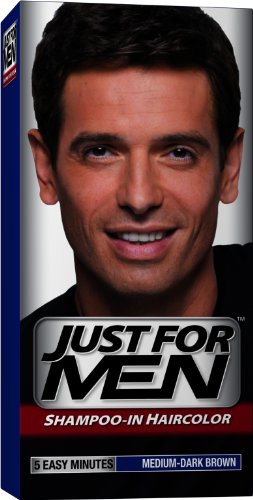 Lasts up to 6 weeks. True color formula. Targets only gray for a natural look. 5 Easy minutes. The world's leader in men's haircolor. Looks Natural: Just for Men targets only the gray hair. Replaces it with subtle tones that match your natural hair color. Easy as Shampooing: No-drip formula works in 5 easy minutes. Rejuvenates Hair: Vitamin-enriched. Leaves hair thicker and fuller-looking. Ammonia-free formula won't damage hair. Lasts up to Six Weeks: Lasts until the gray grows back. Can't-Miss Color: Just for Men comes in 11 natural-looking shades. So, it's easy to find one that truly matches your natural hair color. Can't decide between two shades? Try the lighter one first. You can always go darker later. 2005 Winner: Men's Health Grooming Awards. Made in USA.Just for Men Shampoo-In Hair Color, Medium-Dark Brown 40, 1 application, (Pack of 3) - I recommend you to purchase it at Amazon.com. They have Special offer this time.